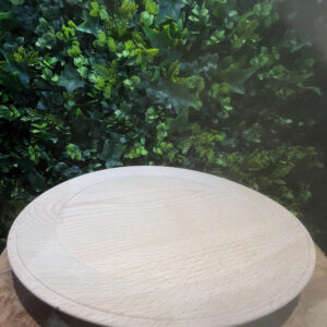Plage de prix : 18,00€ à 25,00€Plateau en tranche de bois naturel avec poignées cuir, personnalisable par gravure laser. Idéal pour service ou décoration.